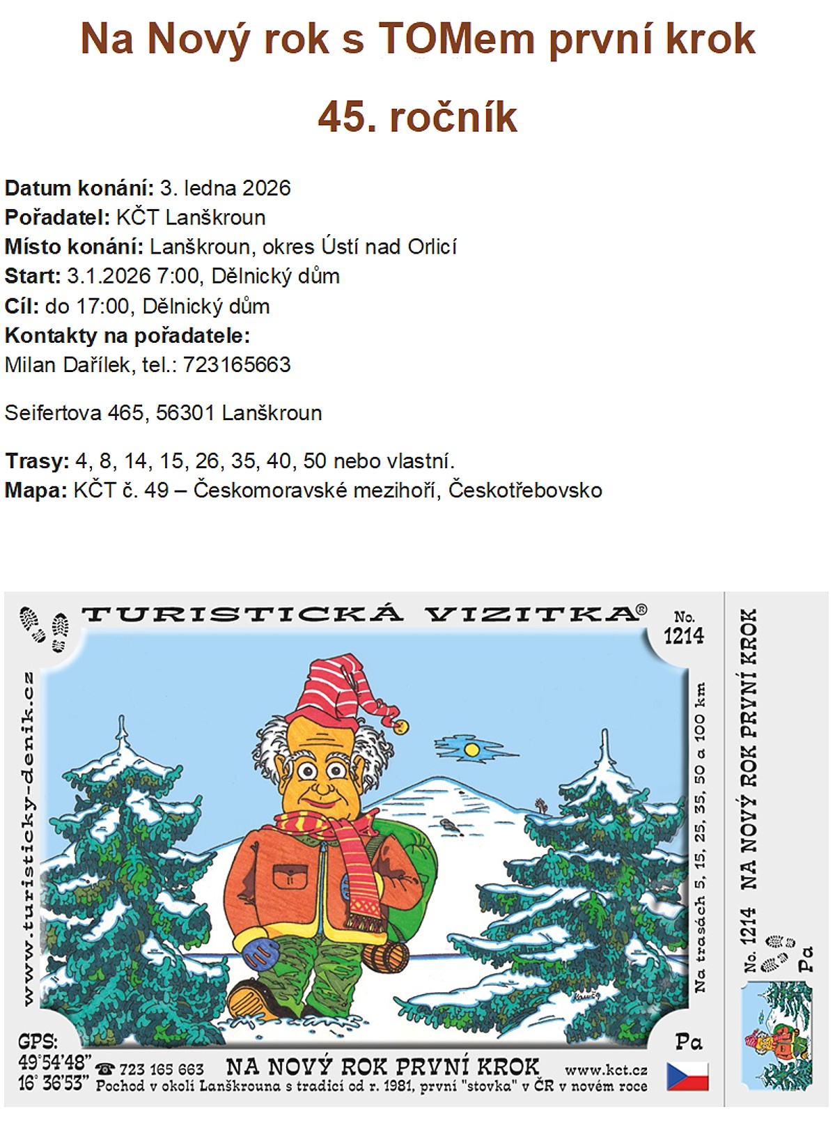 Kontakt na pořadatele >>> Milan Dařílek, 📞+420 723 165 663, Seifertova 465, 563 01 Lanškroun